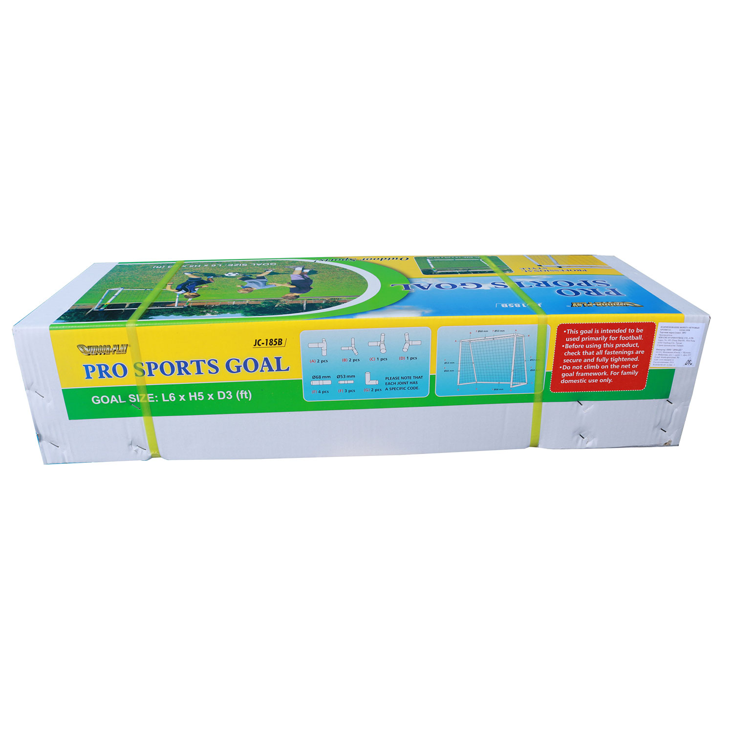 Размеры ворот (182 х 152 х 90 см) делают их идеальными как для детей, так и взрослых. Они изготовлены из ПВХ-труб диаметром 53 мм с защитой от ультрафиолетового излучения, которая прошла необходимые тесты в ЕС на отсутствие фталатов. Фитинги для соединения труб сделаны из усиленного на 40% полипропилена для дополнительной прочности.