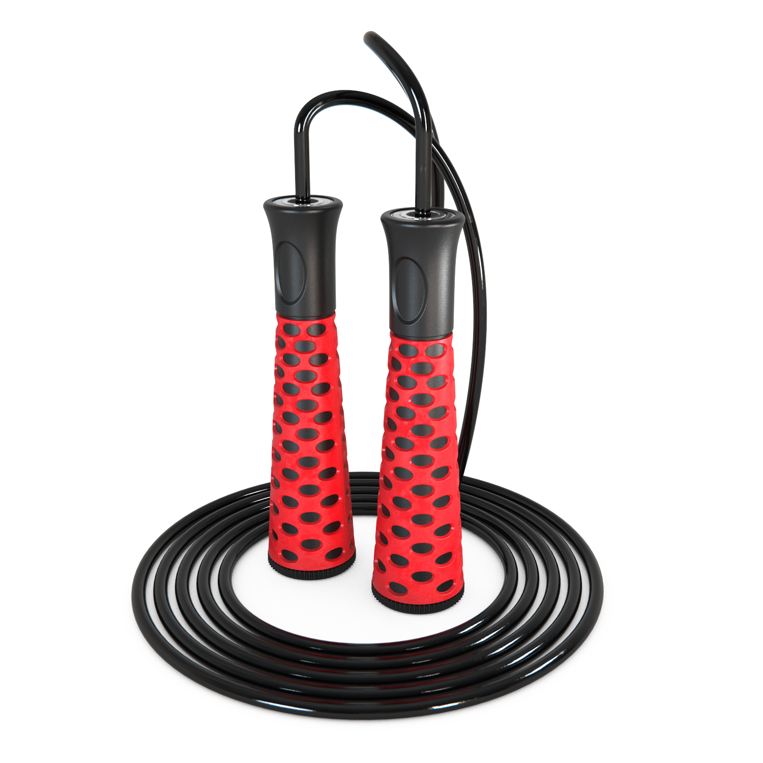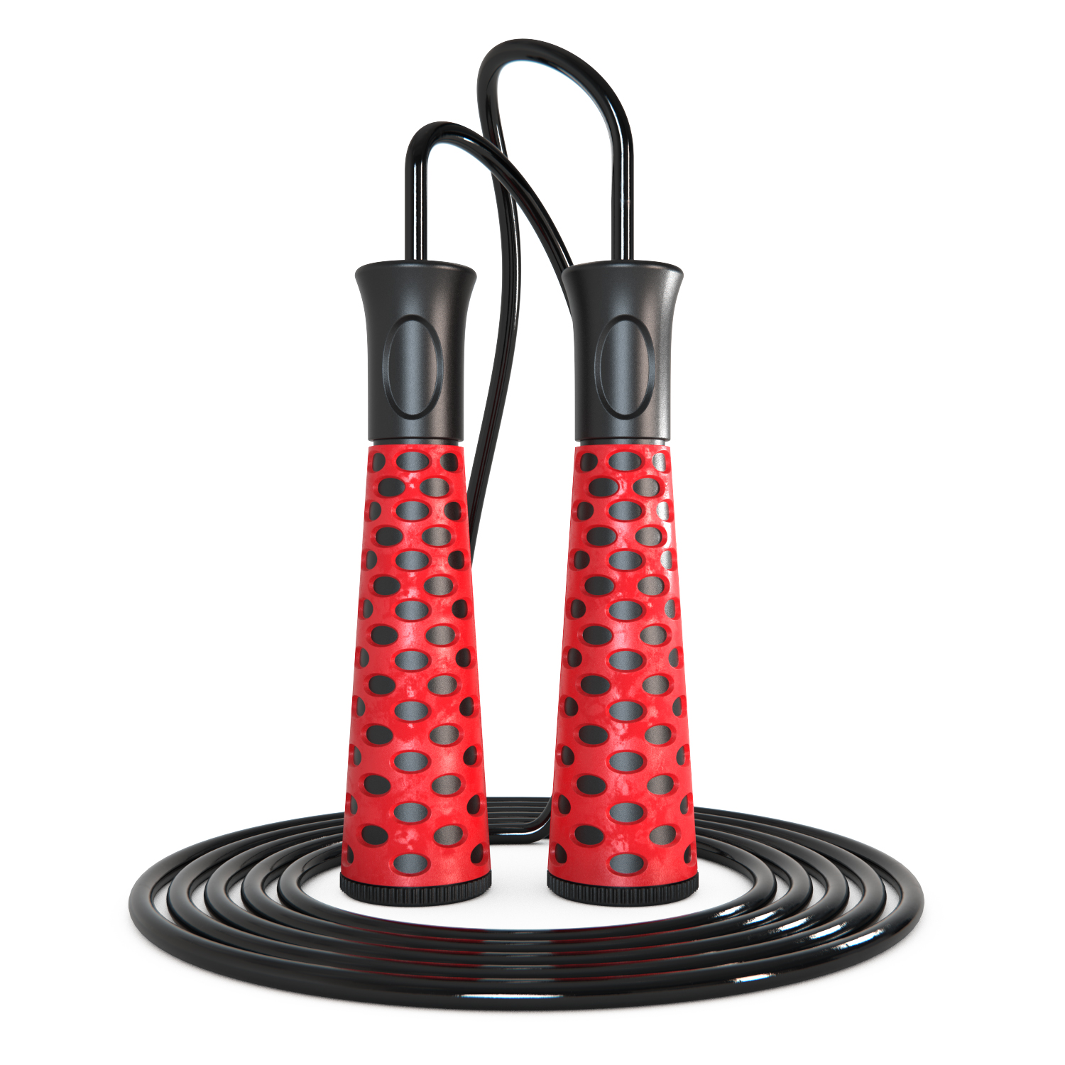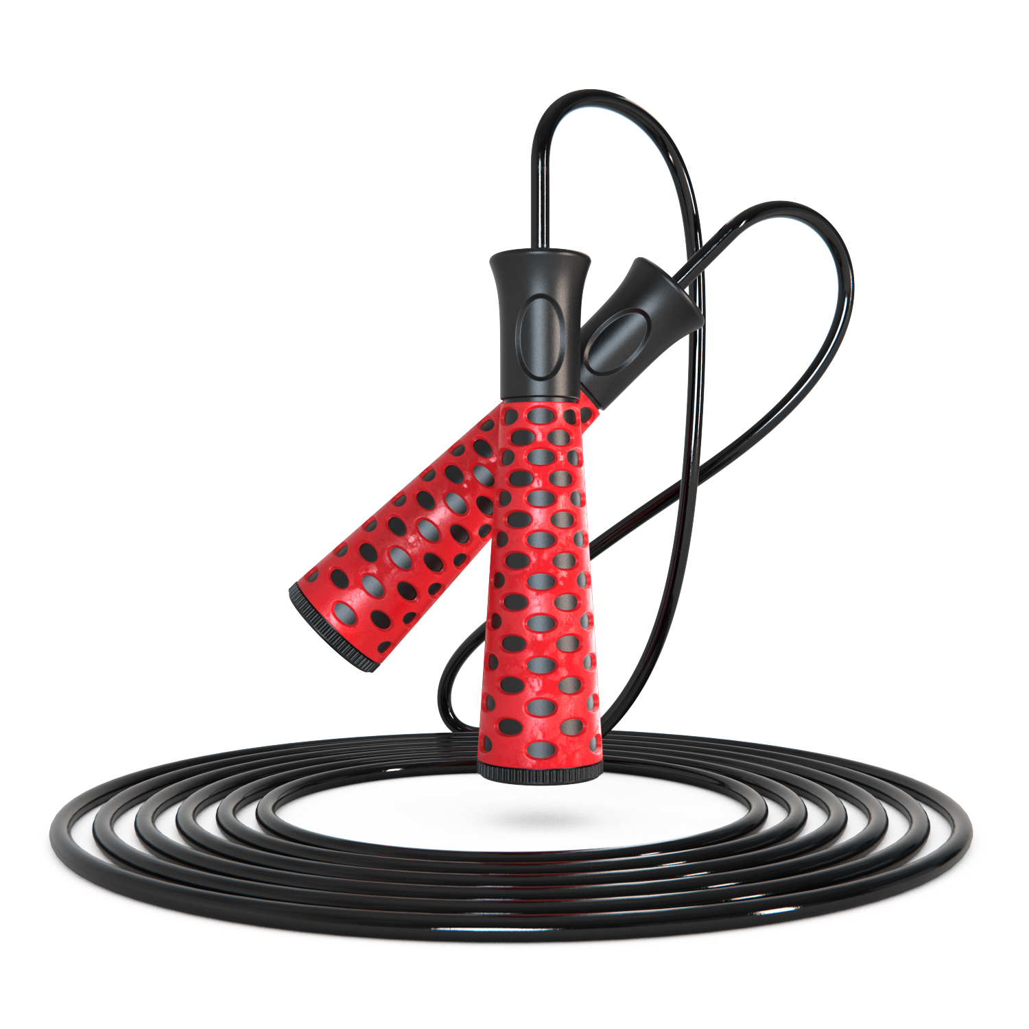 Ручки имеют длину 13.5 см и толщину 3.15 см, изготовлены из прочного материала PP (полипропилен), который обеспечивает долгий срок службы и приятные тактильные ощущения. Верёвка скакалки выполнена из качественного ПВХ, устойчивого к истиранию и скручиваниям во время вращения.